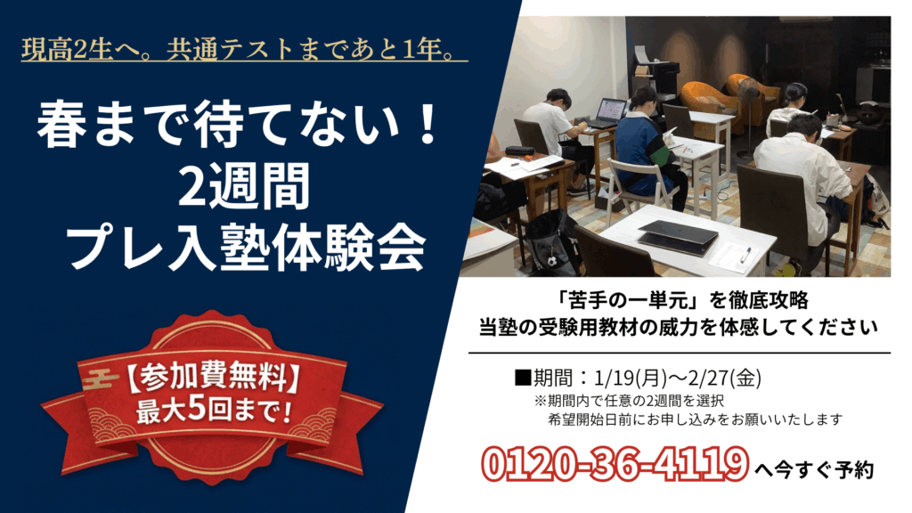 現高校2年生にとって、共通テスト本番まであとちょうど1年となりました。